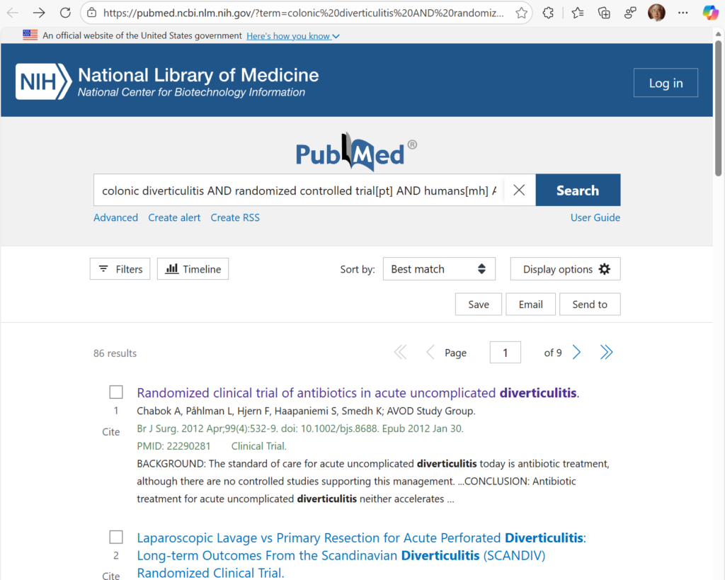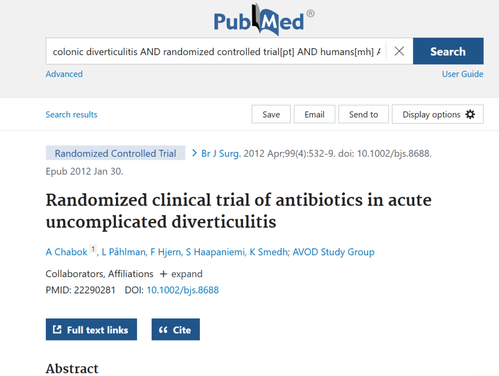 この論文のアブストラクトには”Antibiotic treatment can be used selectively rather than routinely in immunocompetent patients with mild acute uncomplicated diverticulitis. Antibiotic treatment is strongly advised in immunocompromised patients.”と明確に書かれており、Geminiの回答は正確であると言っていいと思われます。また、この論文のPubMedのアブストラクトのページには、Full text linksもあるので、必要ならさらに全文を目を通してGeminiの回答が正しいかを確認することもできます。